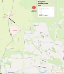 • "Spring Farm Business Centre" is on your left, Drive straight up the business centre drive and follow it round to the car park, you’ll see  Spring Back Therapy is the first unit on your right.